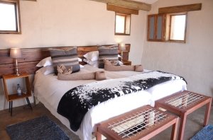 CEC_Jorg_2013b-304Our Directors searched for alternative methods that would give us the insulating properties and be able to withstand the harsh African environment without having to compromise on guests comfort. The solution came from a professor in Cape Town who invented a sand-bag technique for building walls and entire houses out of it. This technique has several advantages against other usual building materials. Firstly there is no high pollution material as cement used in the wall construction – the process of making cement is one of the most polluting processes in the world as it releases vast quantities of heavy metals into the atmosphere. Further the core material of the sand bag technique, the red Kalahari sand, is found on-site – the nearest bricks are made over 200km away and it would have taken many truck loads to build the lodge. On-top of that, the cement required to make the bricks would have been sourced from over 1000 km away. In contrast to that, all the bags required to build the lodge, including the staff village and storage buildings, fitted onto one truck.